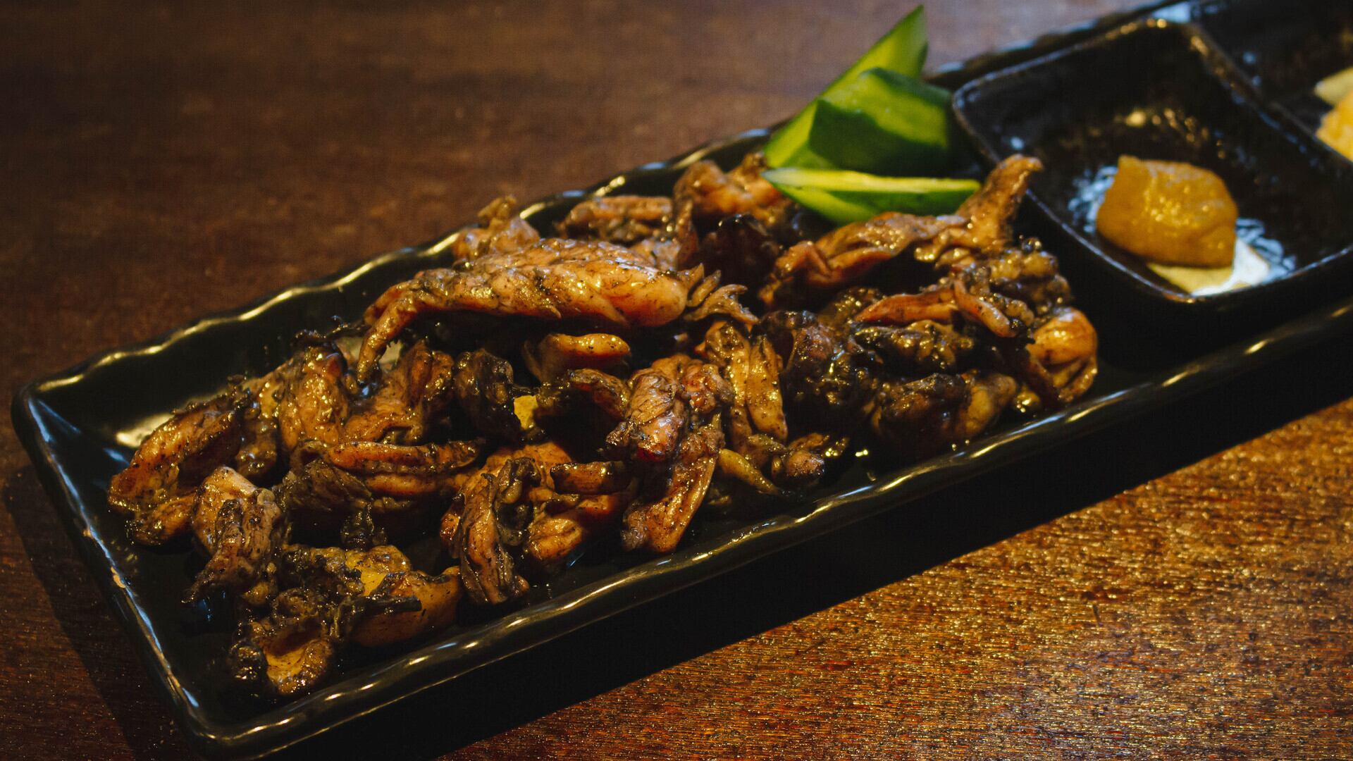 若鳥セセリ炭火焼、鶏肉の首の部分の希少部位になります。コリコリ食感が食欲をそそります。