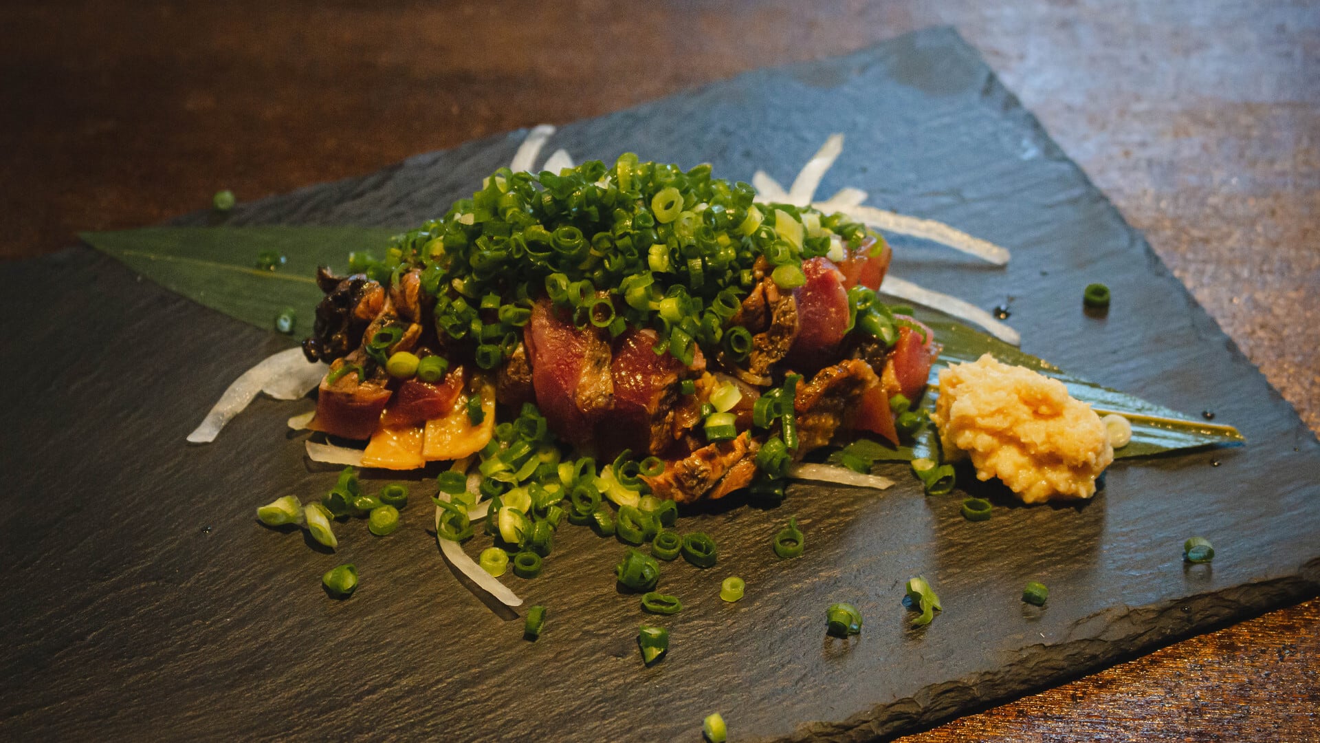 炭火焼で炭の香りが香ばしく、自家製のたたきのたれと相性抜群の1品